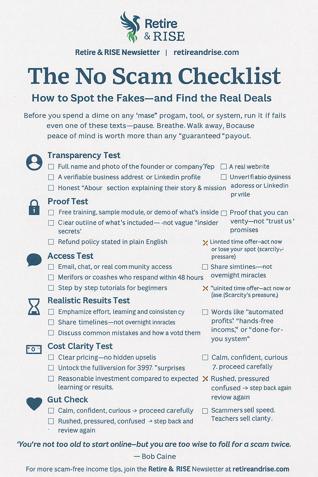 But before spending a dime, use The No Scam Checklist I created. It’s a free, printable guide with the exact questions I ask before joining any program or affiliate system.